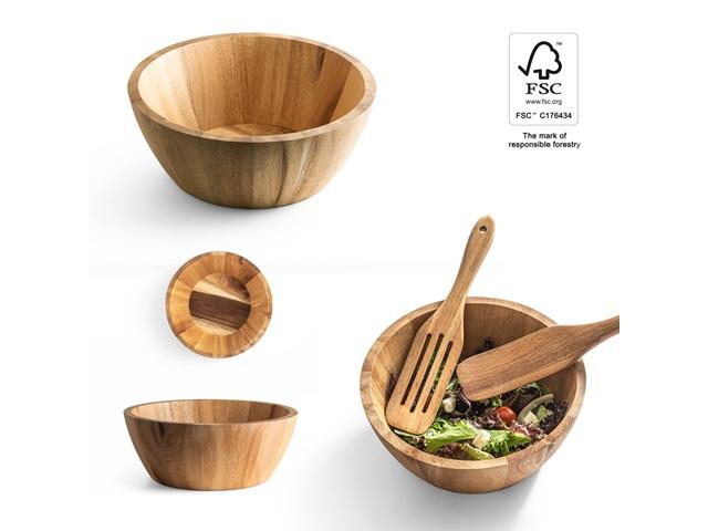 Okrugla zdjela za salatu od bagremovog drva, od FSC™ certificiranog materijala i drugih kontroliranih materijala. Isporučuje se u kutiji od kraft papira. Budući da je proizvod izrađen od prirodnih materijala, boja te rezultat ispisa mogu se razlikovati od proizvoda do proizvoda. Ø230 x 90 mm