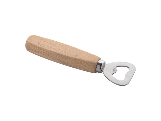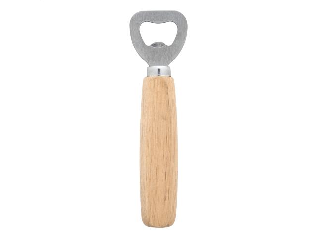 Bottle opener with wooden handle.