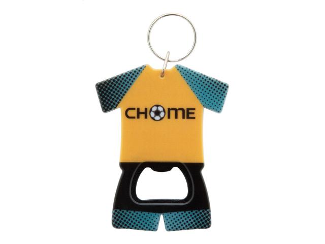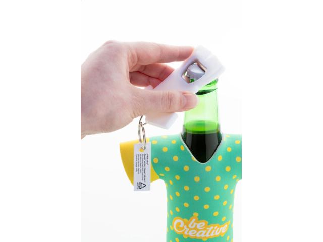 Sport dress shaped recycled ABS plastic bottle opener with metal keyring.