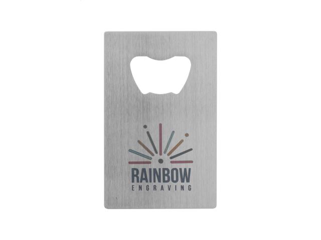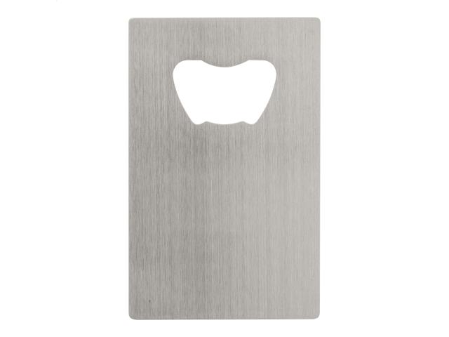Stainless steel, credit card-shaped bottle opener.