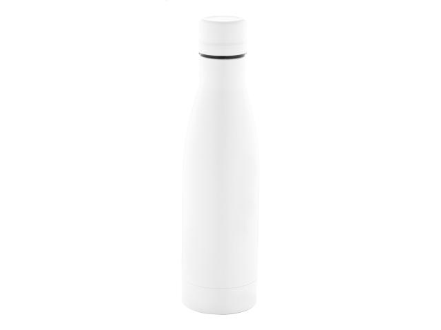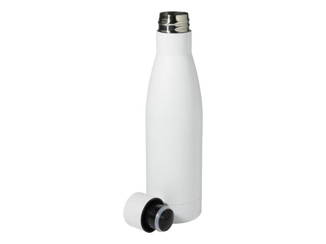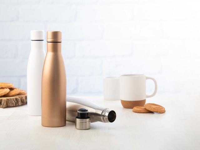 Double-wall stainless steel, copper insulated vacuum bottle, 500 ml. Copper insulation keeps drinks hot for 12 and cold for 24 hours.