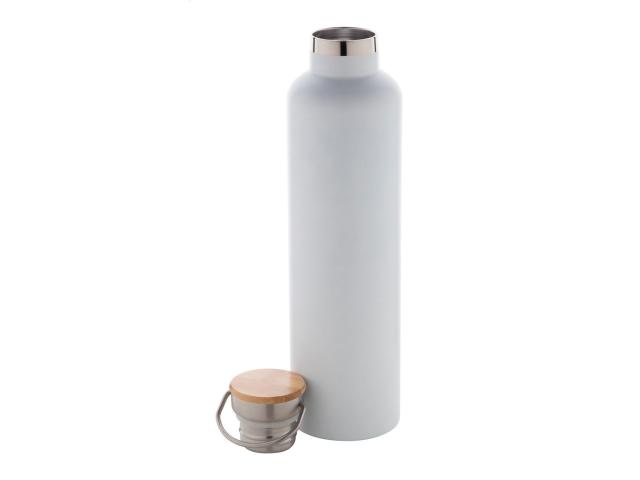 Double-wall stainless steel, vaccum insulated bottle with bamboo carry lid. 1000 ml.