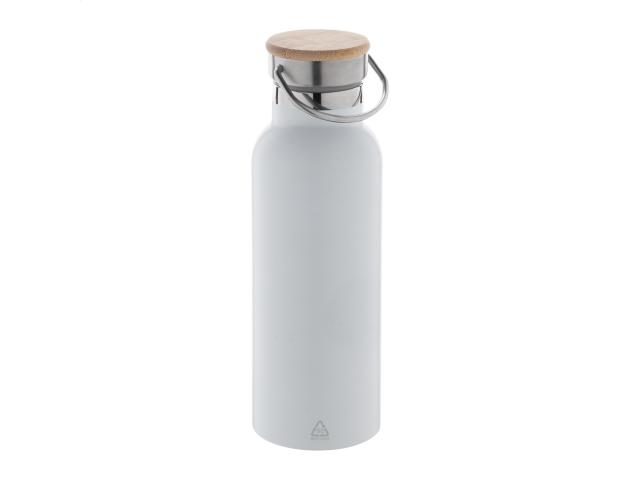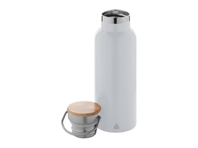 Double-wall, recycled stainless steel vacuum insulated bottle with bamboo carry lid. 500 ml.
