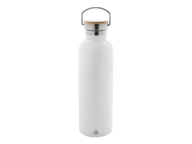 Double-wall, recycled stainless steel vacuum insulated bottle with bamboo carry lid, 750 ml.