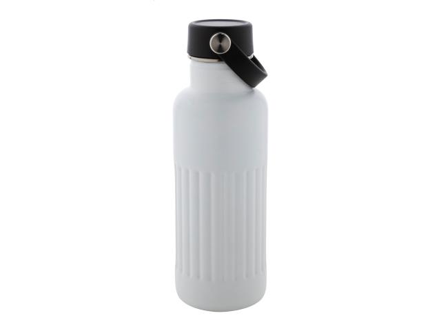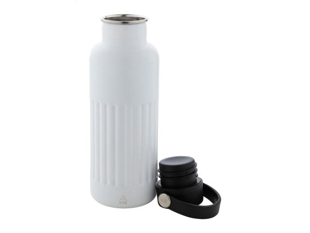 Double-wall, recycled stainless steel vacuum insulated bottle with PP plastic carry lid. 500 ml.