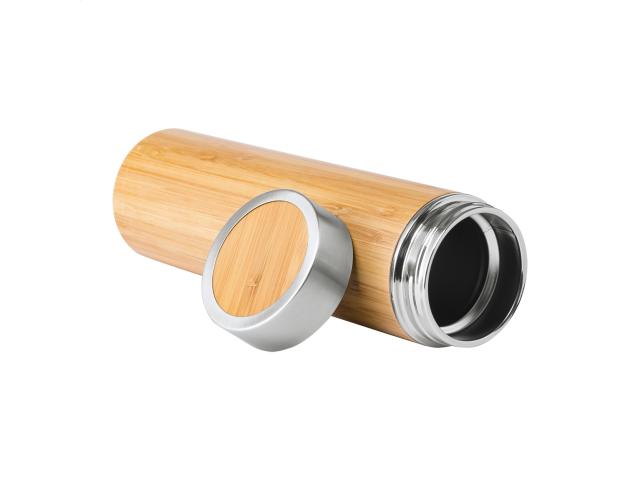 Double-wall, stainless steel and bamboo, insulated vacuum flask. 500 ml.