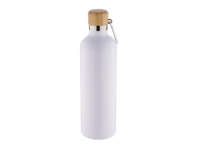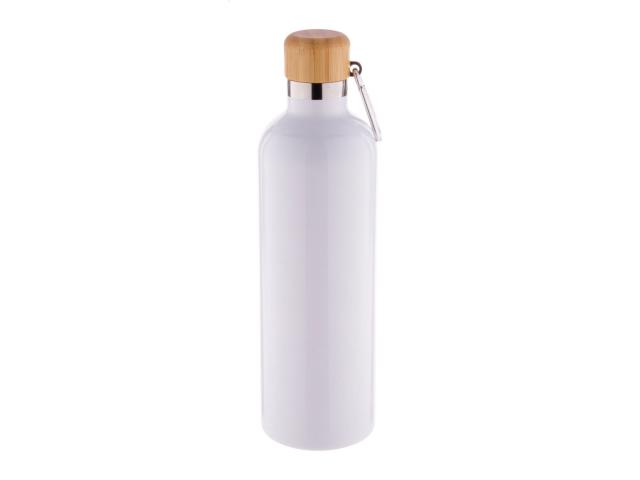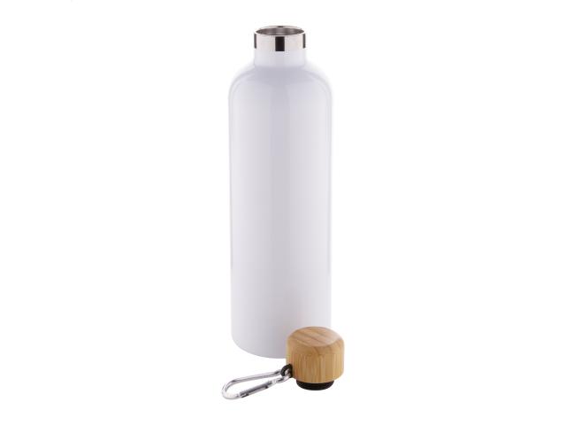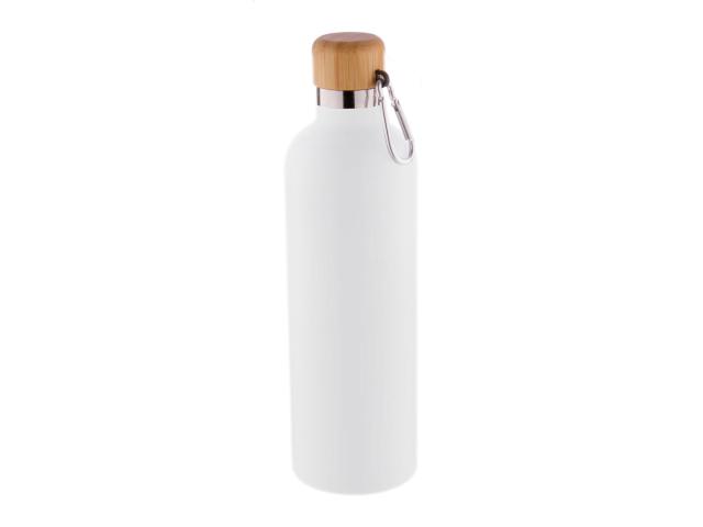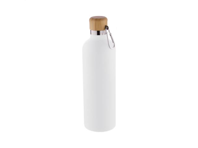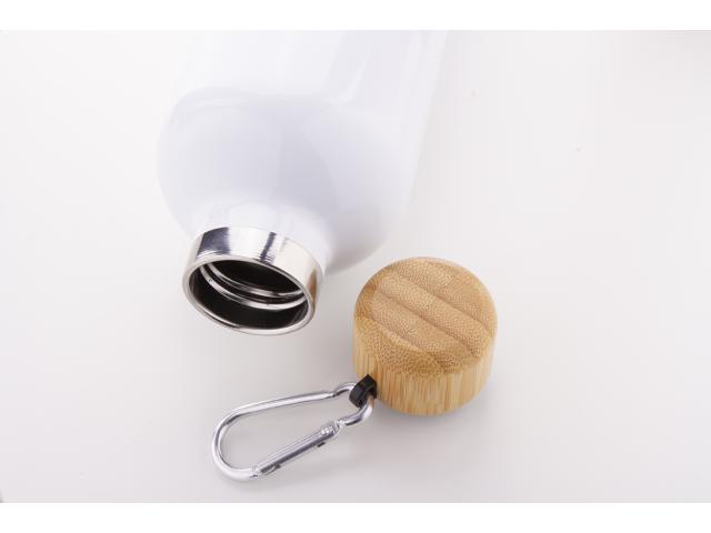 Double-wall stainless steel, vacuum insulated bottle with bamboo cap and carabiner, 500 ml.