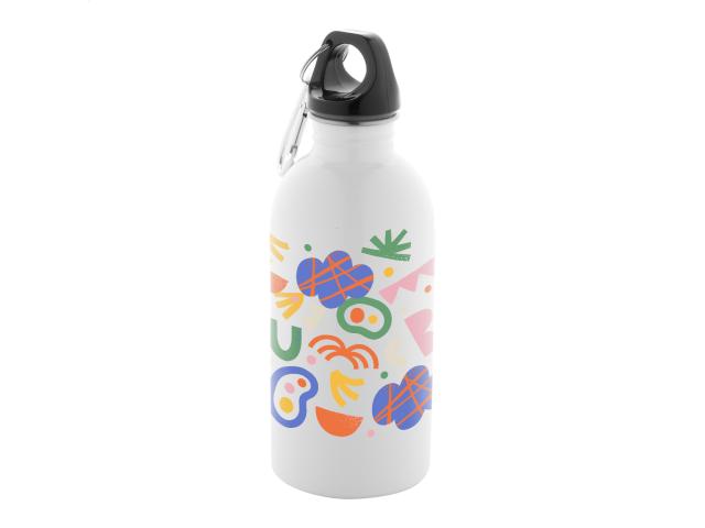 Recycled stainless steel bottle for sublimation printing with aluminium carabiner, 400 ml.