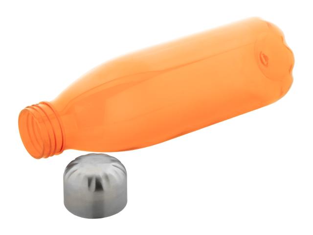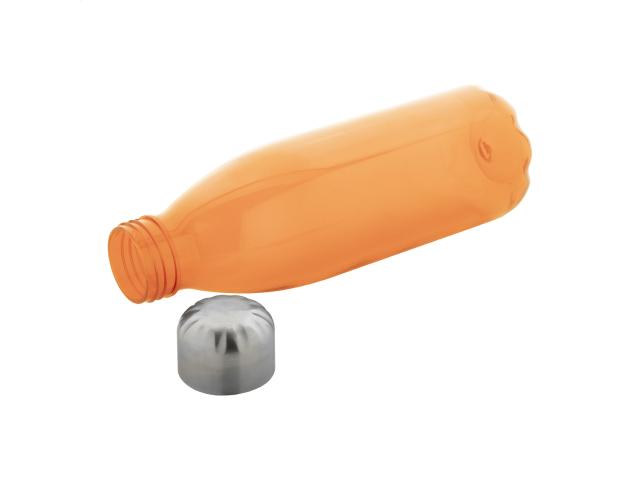 RPET bottle with stainless steel cap, 600 ml. BPA-free. Not suitable for carbonated drinks.