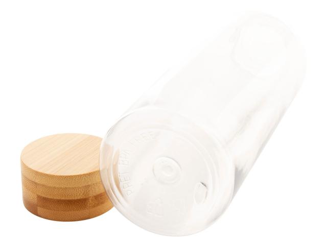 RPET bottle with bamboo lid, 500 ml. BPA-free. Not suitable for carbonated drinks.