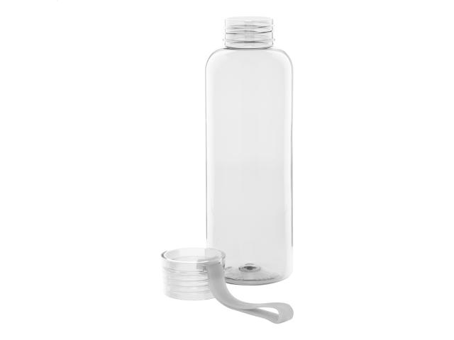 RPET bottle with matching colour lid and silicone carry strap, 500 ml. Not suitable for carbonated drinks.