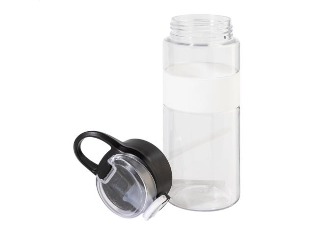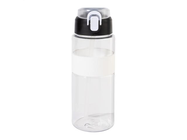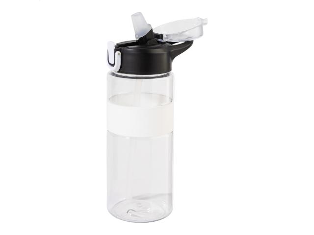 RPET sport bottle with silicone grip, auto open flip-top drinking lid with integrated straw, silicone mouth piece and safety lock. 700 ml. BPA-free. Not suitable for carbonated drinks.