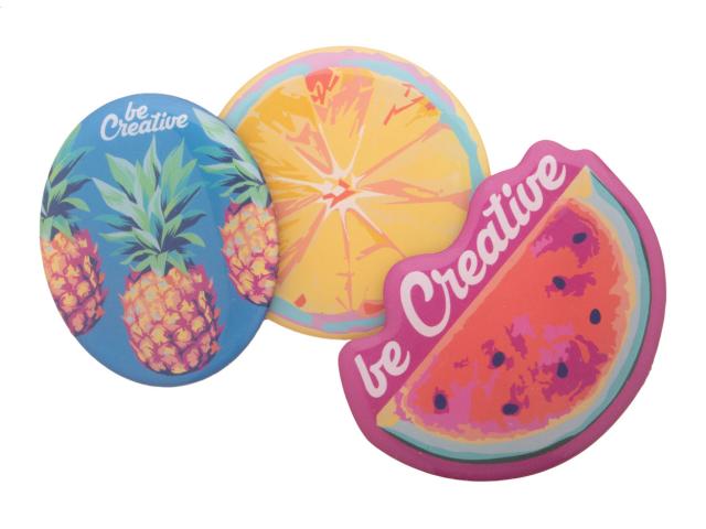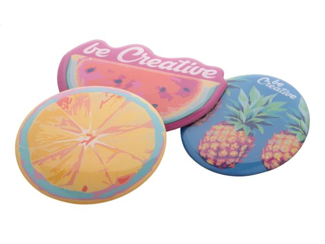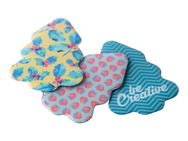 Custom made epoxy coated fridge magnet with unique shape and digital printing. MOQ: 100 pcs.