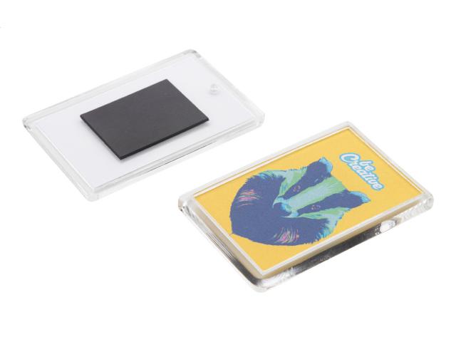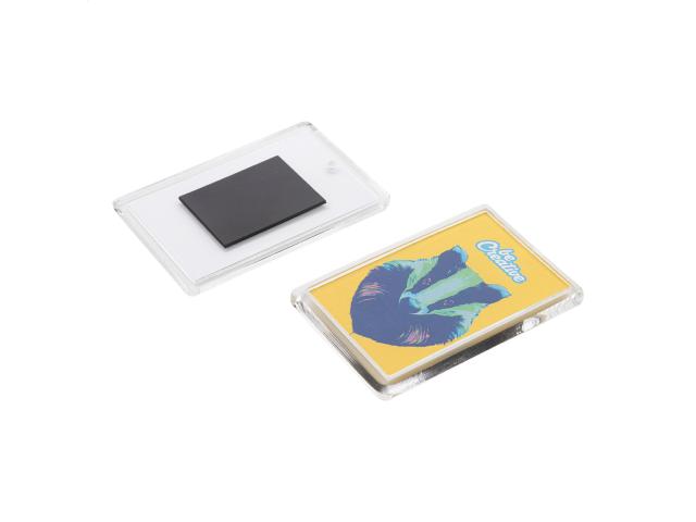 Rectangular shaped acrylic fridge magnet with custom full colour paper insert. Price includes digital printing. MOQ: 100 pcs.
