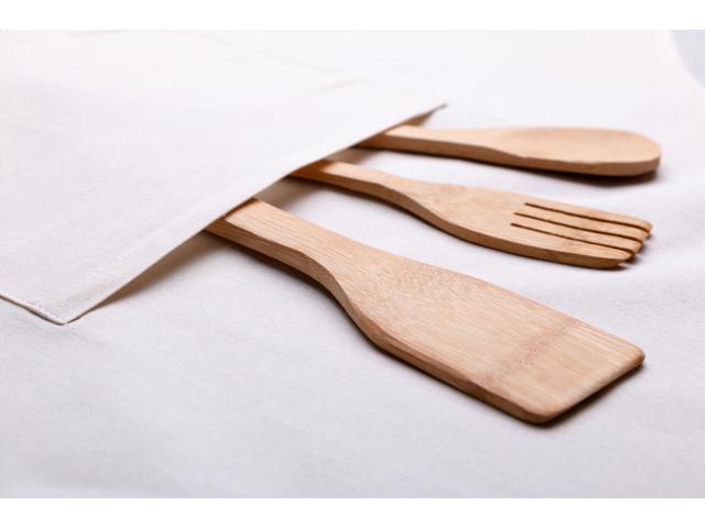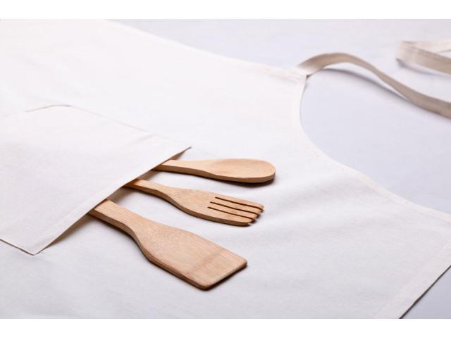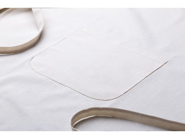 100% cotton apron with front pocket, 150 g/m².