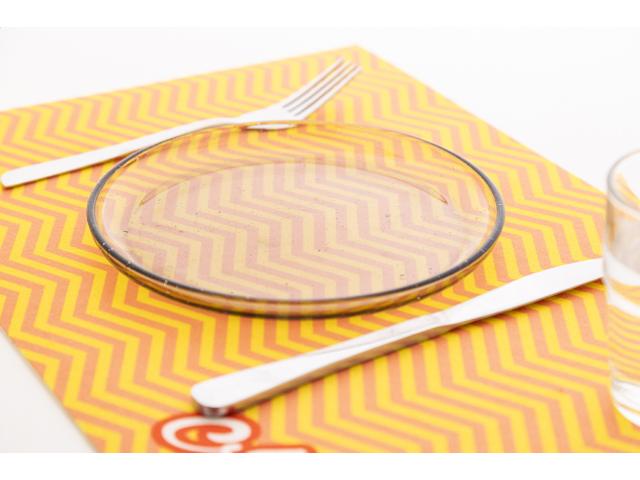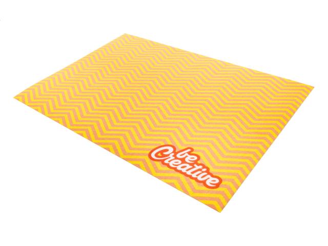 Custom made, RPET felt placemat with custom graphics on one side. Price includes sublimation printing. MOQ: 50 pcs.
