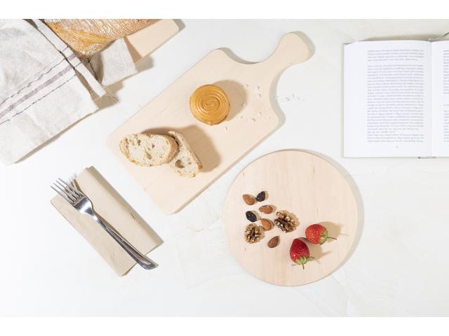 Cutting board with handle made from a single piece of natural alder wood. 100% natural and completely glue-free.