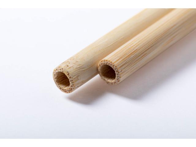 Set of 2 reusable natural bamboo drinking straws and cleaning brush in cotton pouch. The diameter and surface of the straws may vary.