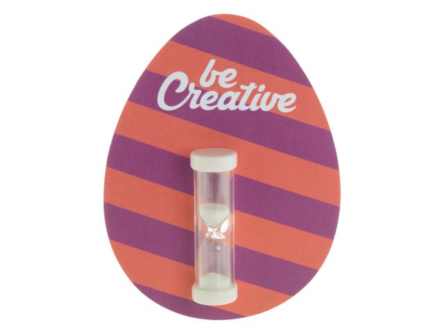 Plastic, 3 minutes sand timer with matching colour sand and suction cup holder. Customise it with paper insert!