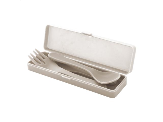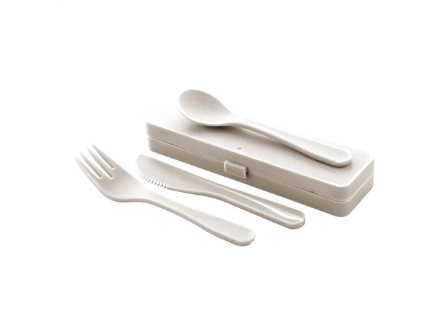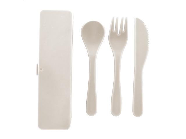3 pc PP plastic cutlery set in matching colour case. Including fork, knife and spoon.