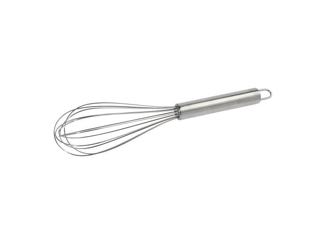 Stainless steel egg whisk.