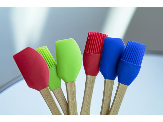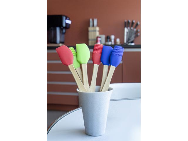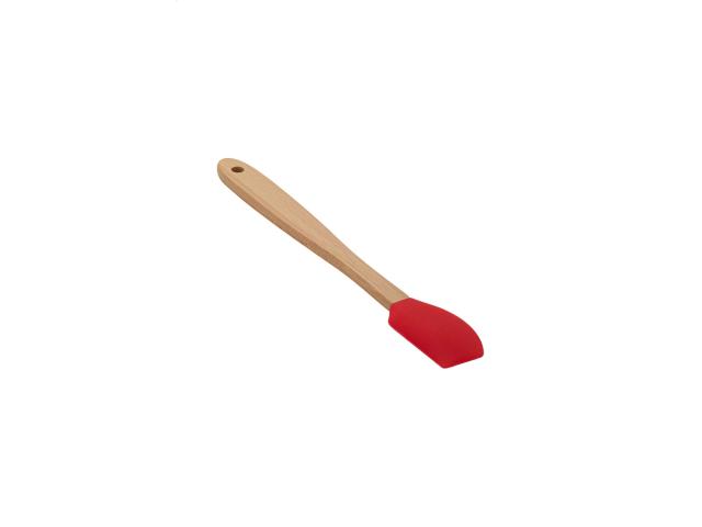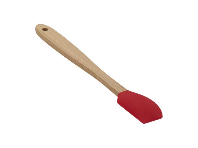 Silicone baking spatula with bamboo handle.