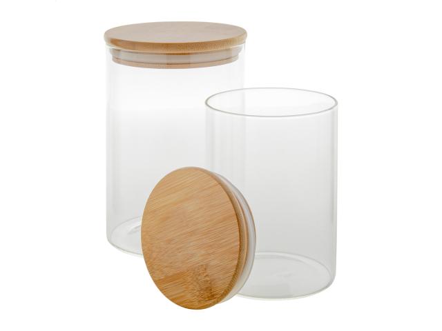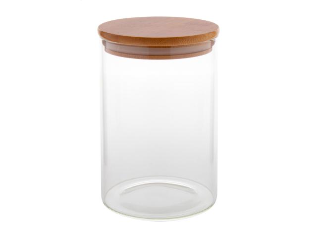 Borosilicate glass storage jar with bamboo lid, 1000 ml. Ideal to store dry foods and ingredients.