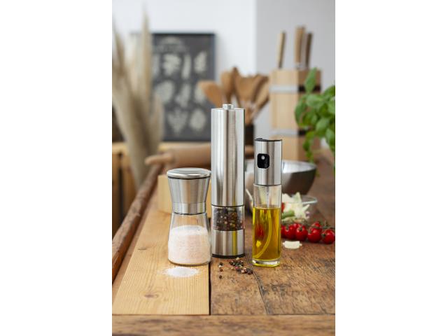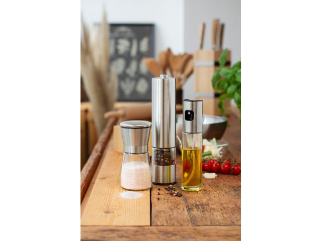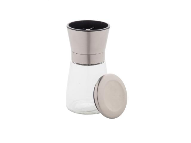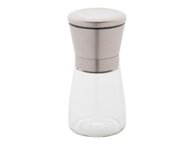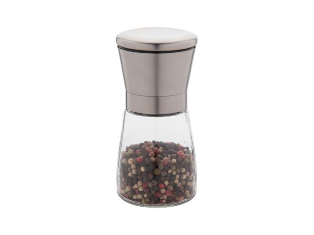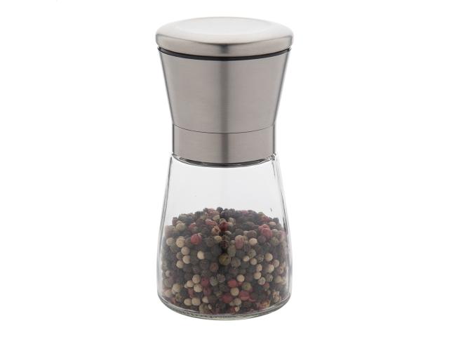 Stainless steel manual salt and pepper mill with ceramic grinder core and glass container, 180 ml.