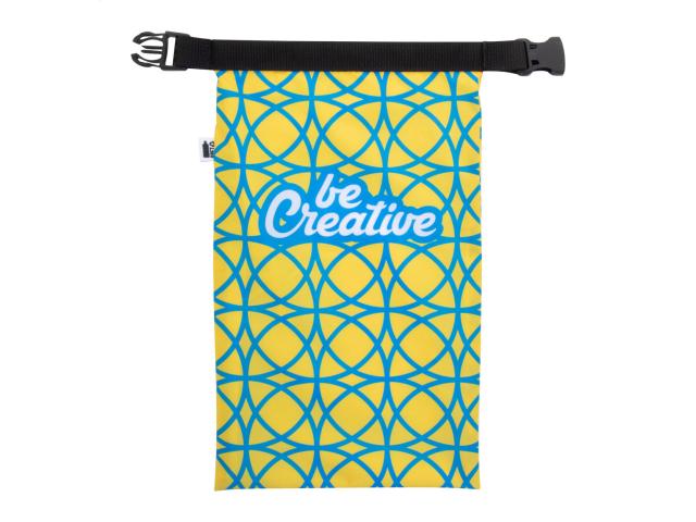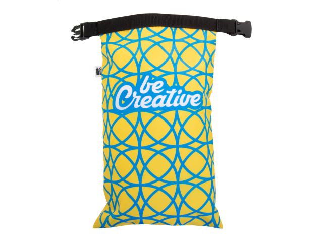 Custom made, reusable rolltop bread holder bag in 190T RPET polyester with durable waterproof lining. With all over sublimation printed graphics. MOQ: 25 pcs.
