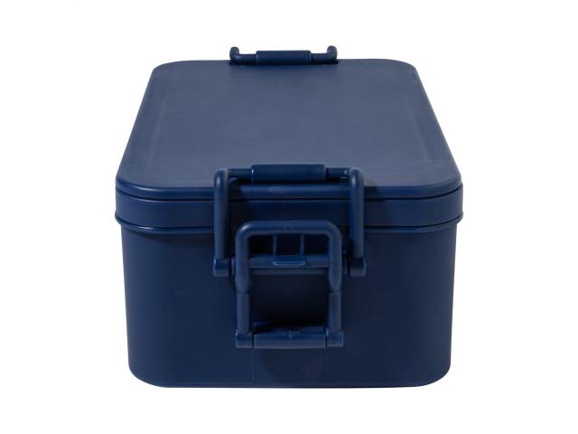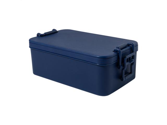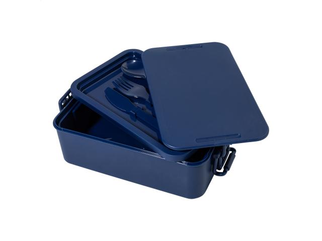 Lunch box in PP plastic with cutlery set (fork, spoon and knife), buckle closure and 2 compartments (1000 ml & 800ml). Stackable design for compact storage.