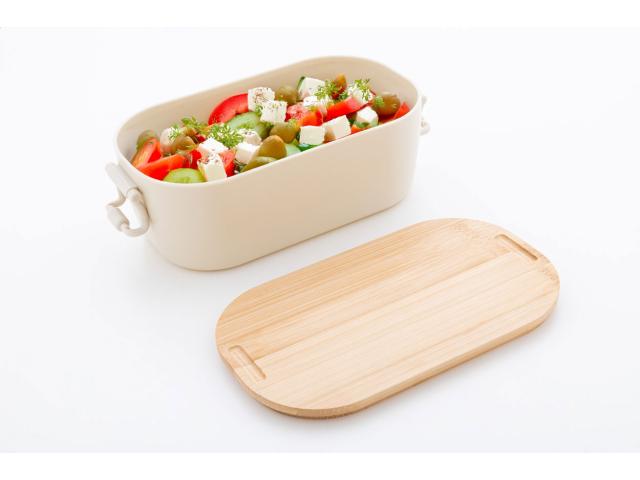 Lunch box in PP plastic with bamboo lid and buckle closure, 1000 ml.