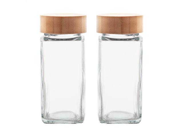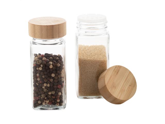 2 pc glass spice holder set with bamboo lid, 120 ml. In kraft paper box.