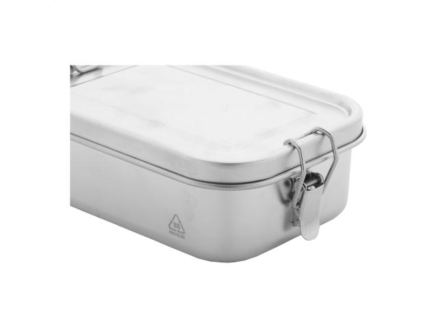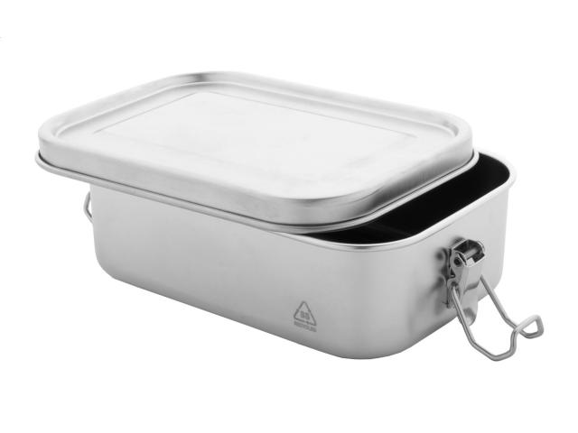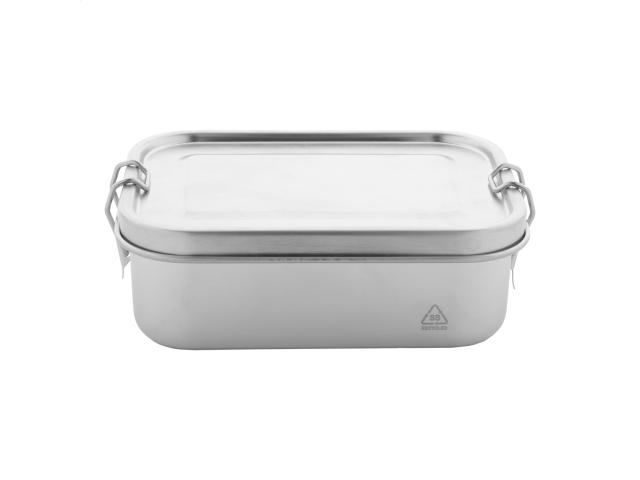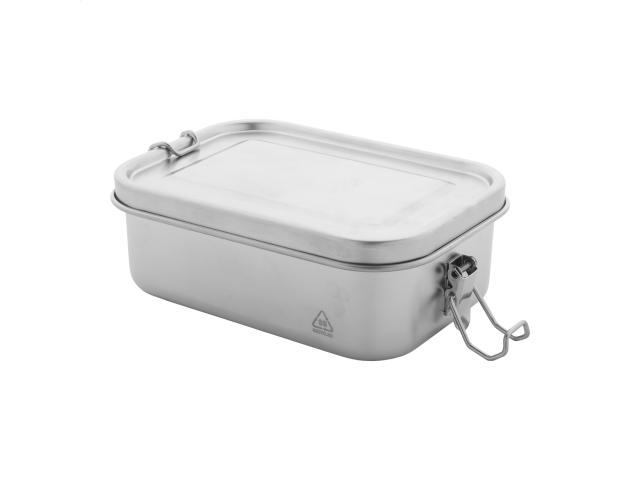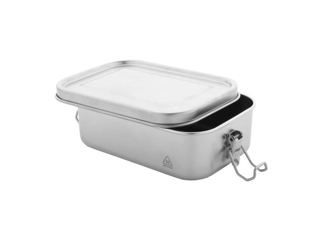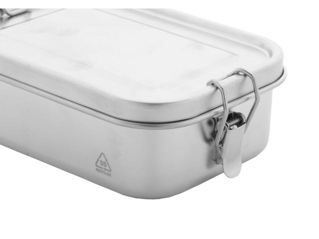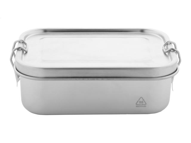 Recycled stainless steel lunch box with secure buckle closure, 750 ml.