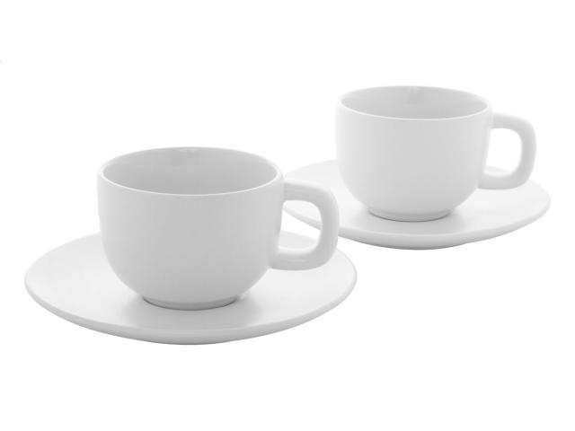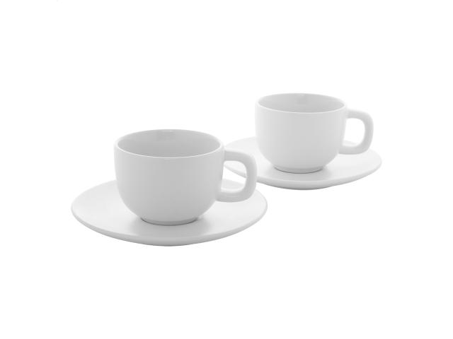 High quality ceramic cappuccino cup set with 2 cups and saucers. With matte outside and glossy inside finish. 200 ml. In kraft paper box.