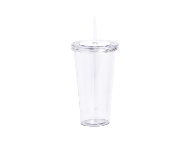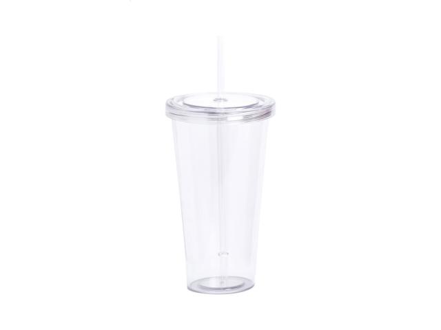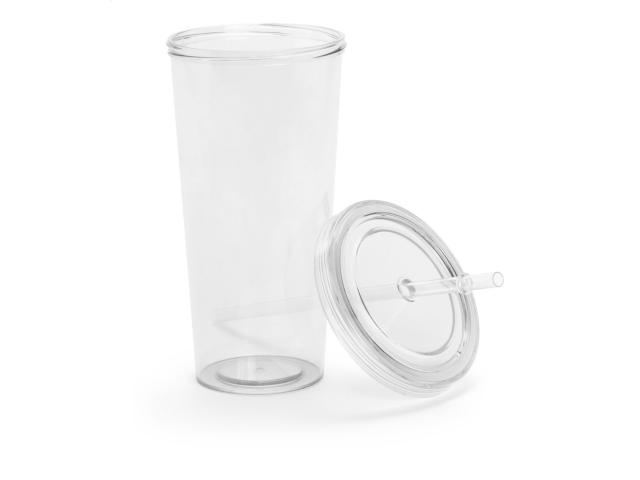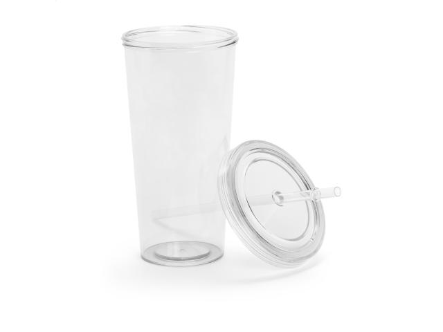 Coloured, transparent plastic tumbler cup with drinking straw, 750 ml.