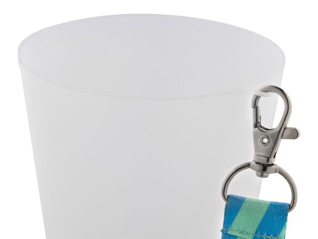 Reusable event cup with lanyard hook in frosted PP plastic, 500 ml. Net capacity: 450 ml.