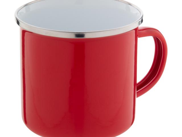 Vintage metal enamel mug with stainless steel rim, 300 ml.