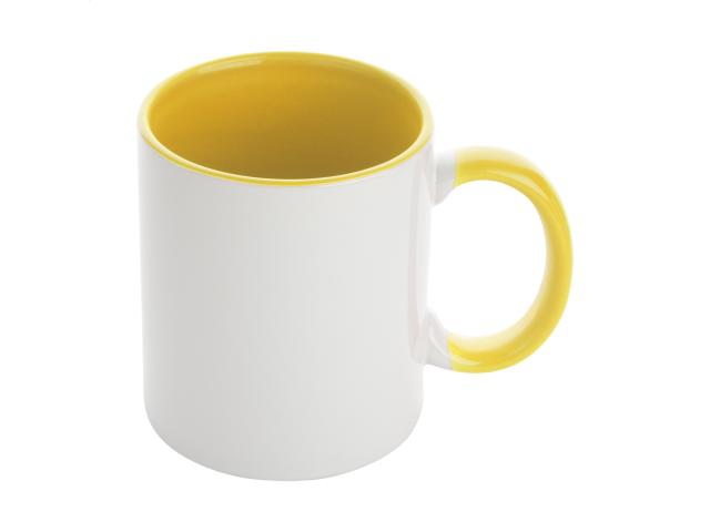 Ceramic sublimation mug with coloured inside and matching colour handle, in gift box. 350 ml.
