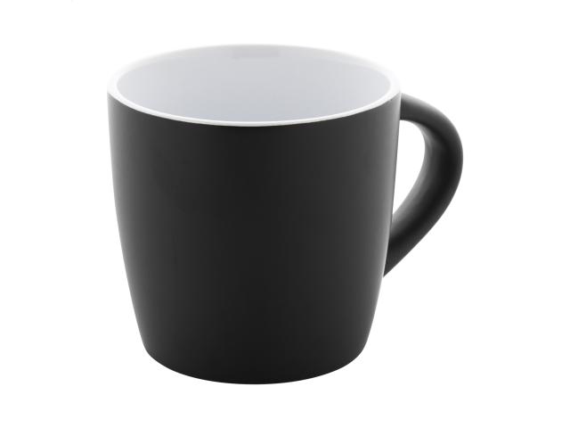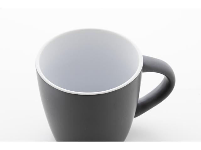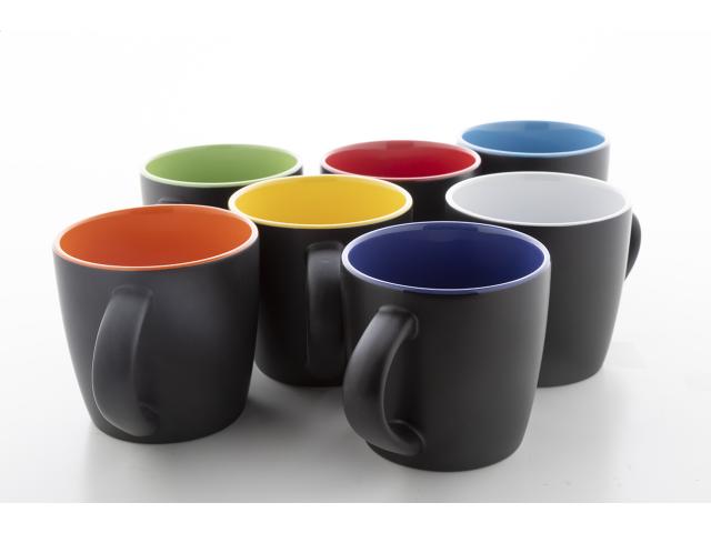 High quality ceramic mug with matte black outside and glossy coloured inside finish, 300 ml. In kraft paper box.