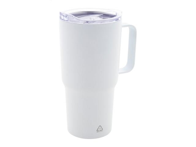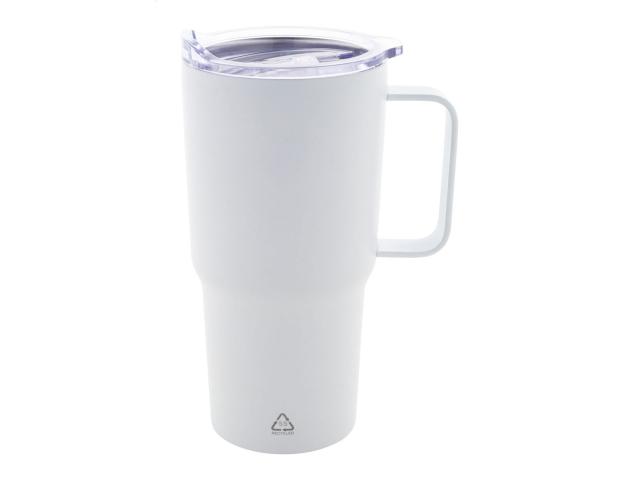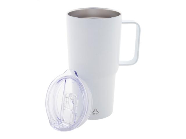 Double-wall, recycled stainless steel vacuum insulated thermo mug with PS plastic drinking lid. 600 ml.