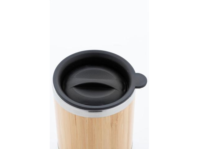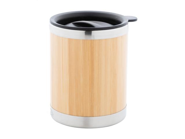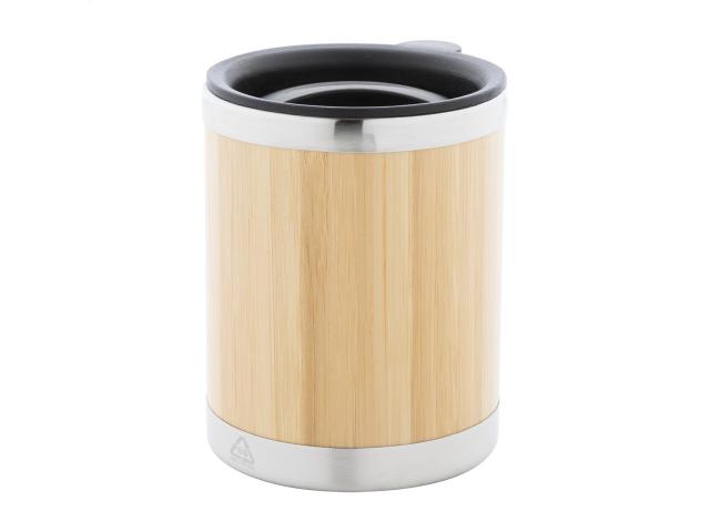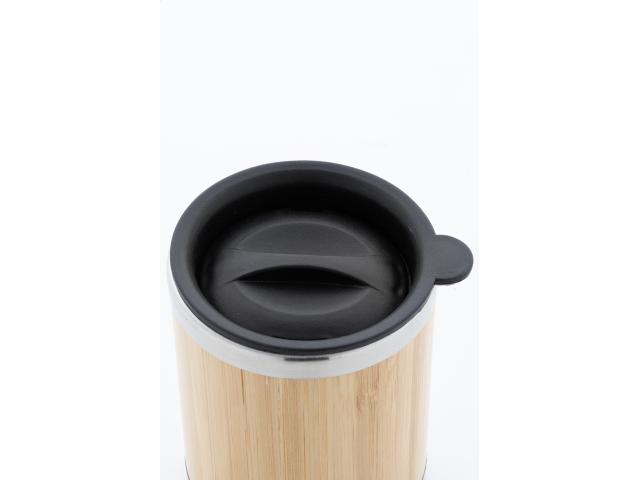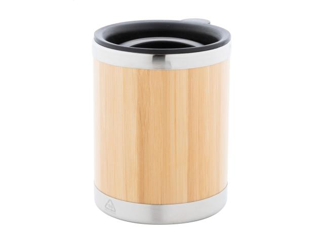 Bamboo covered, double-wall recycled stainless steel insulated thermo cup with PP drinking lid, 300 ml.