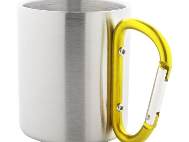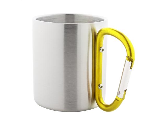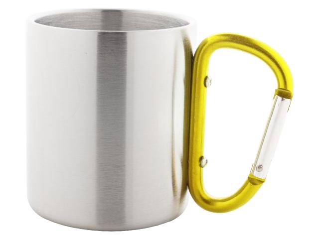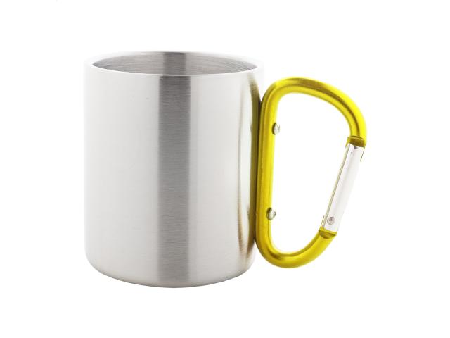 Stainless steel mug with coloured carabiner handle, 200 ml.