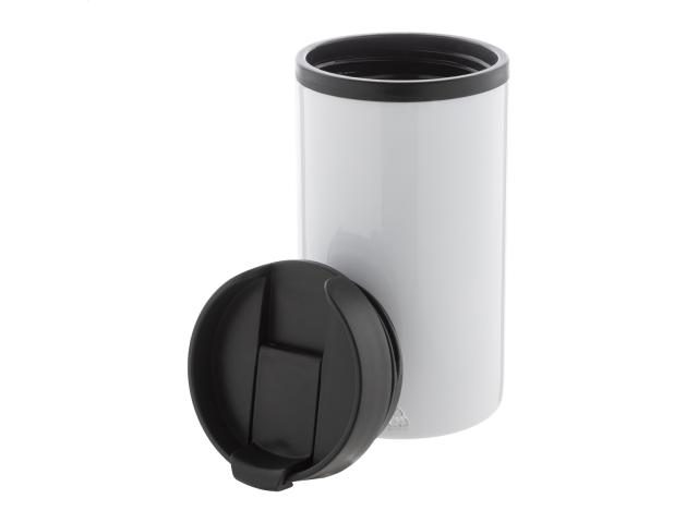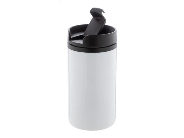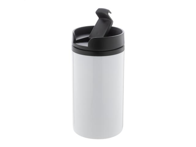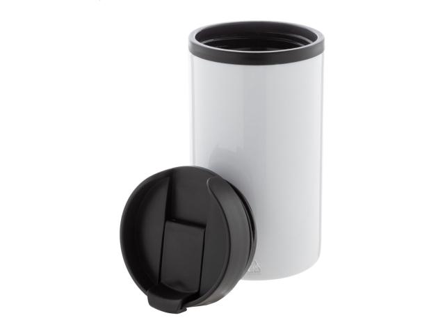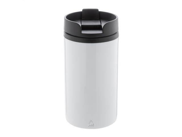 Double-wall, recycled stainless steel insulated thermo cup with PP plastic inside and drinking lid. 250 ml.