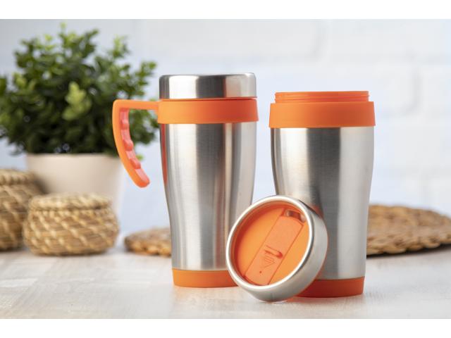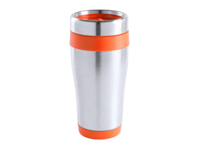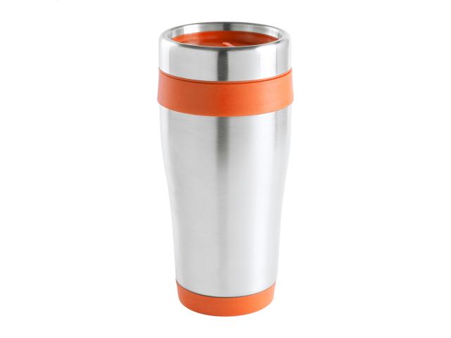 Stainless steel, double-wall thermo cup with coloured plastic parts, in gift box. 450 ml.