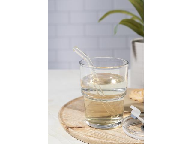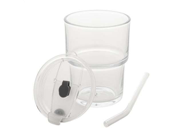 Glass travel cup with plastic drinking lid and glass straw. 400 ml.