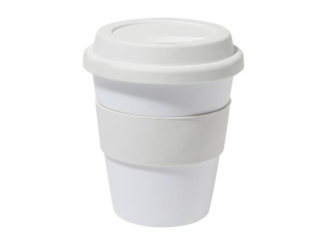Single-wall, PP plastic travel cup with TPE drinking lid and grip. 350 ml.