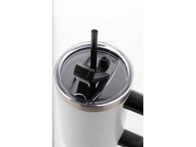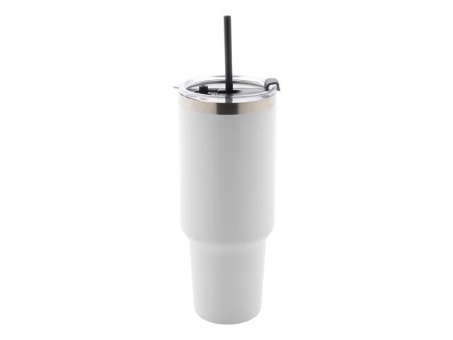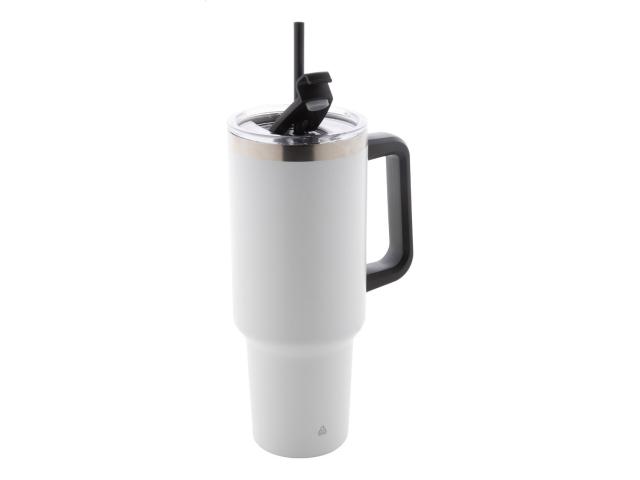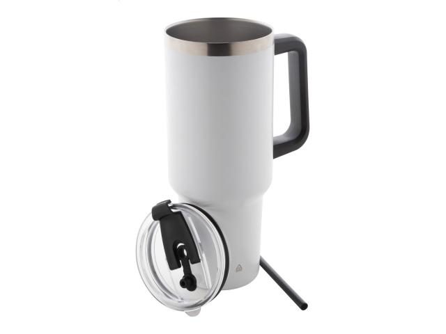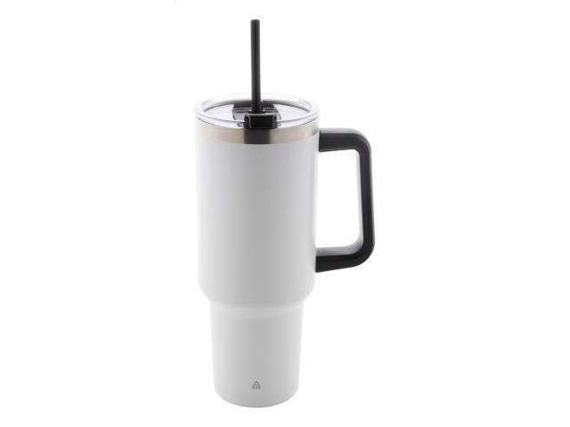 Double-wall, recycled stainless steel vacuum insulated thermo mug with PS drinking lid and PP straw. 1200 ml.