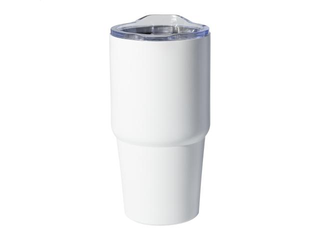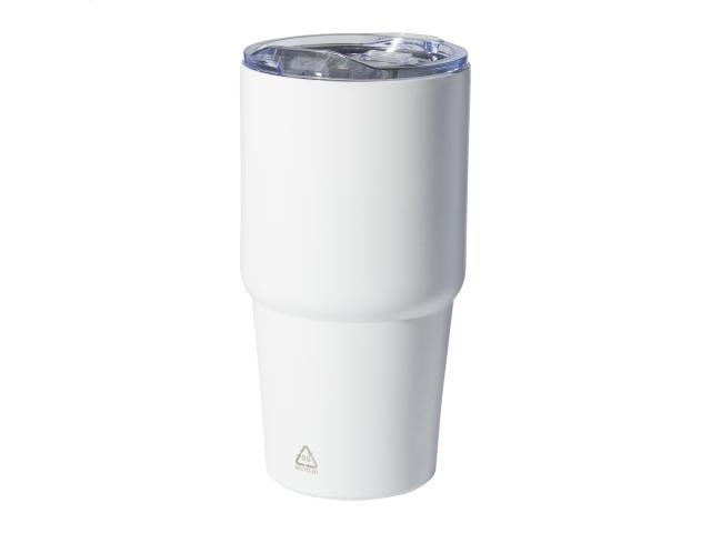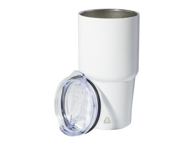 Double-wall, recycled stainless steel vacuum insulated thermo cup with PS plastic drinking lid. 600 ml.