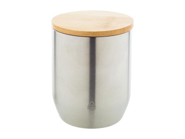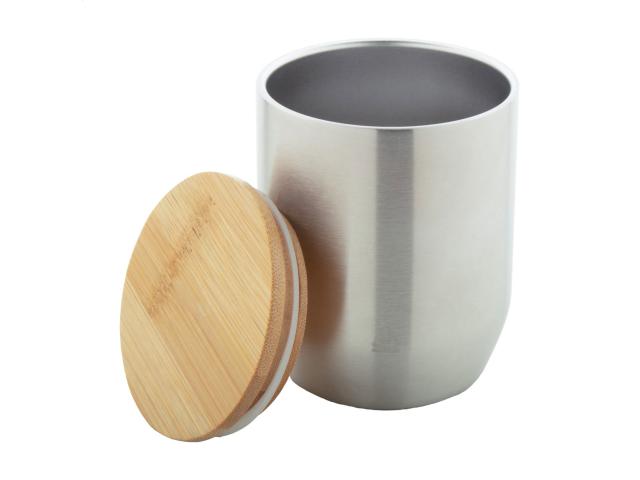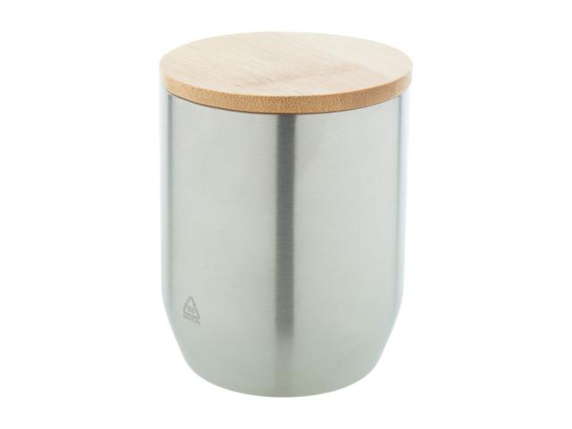 Double-wall, recycled stainless steel thermo cup with bamboo lid, 300 ml.