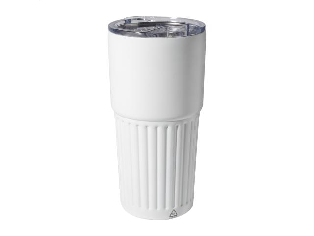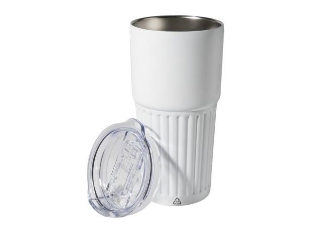Double-wall, recycled stainless steel insulated thermo cup with ABS plastic drinking lid. 600 ml.